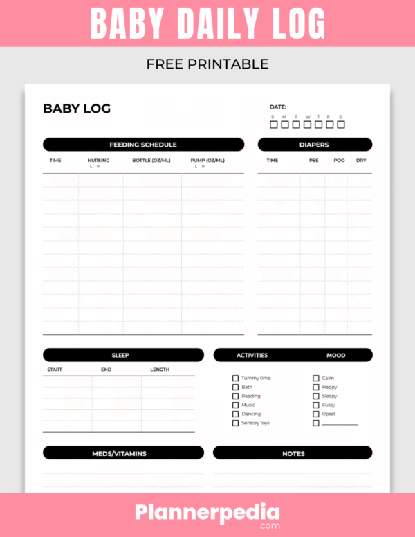 Baby Daily Log helps new parents track daily feedings and diaper changes, keeping things organized. With a simple design, you can download, print, and use the PDF for easy daily use.