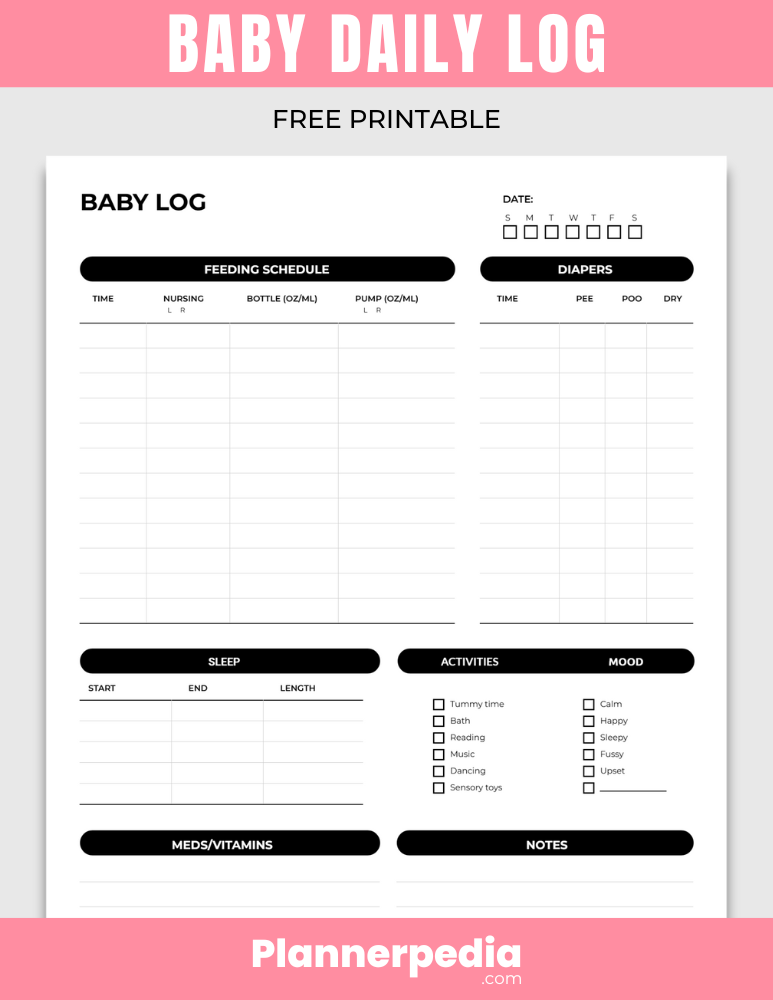 Printable Baby Daily Log for Free